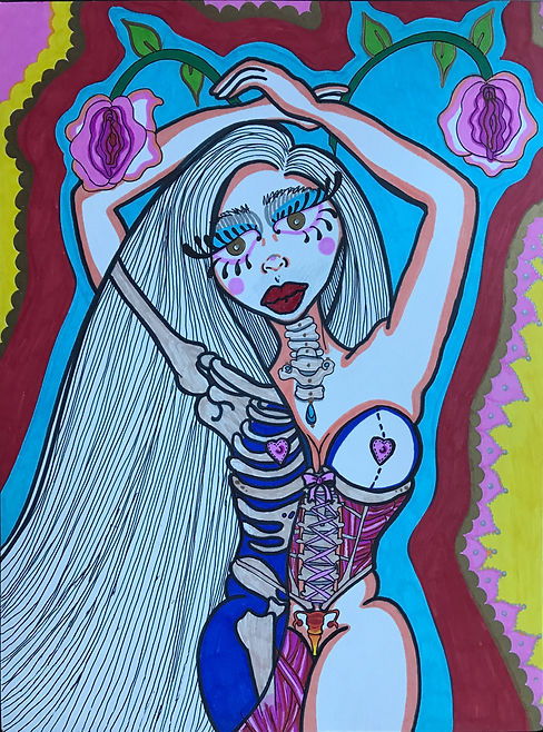 The "Zombie Mommie" project was born out of heartbreak, self-discovery, and rage. It started as a small collection of drawings that were meant to highlight the strength and suffering that comes out of female exploitation and objectification. The depictions of bodily harm and physical violence against women forces viewers to confront difficult feelings and the uncomfortable topics of sexual violence and the vulnerability of women. The gore and nudity of the unsettling"Zombie Mommie" imagery is meant to disturb viewers and disrupt notions we have of womanhood.